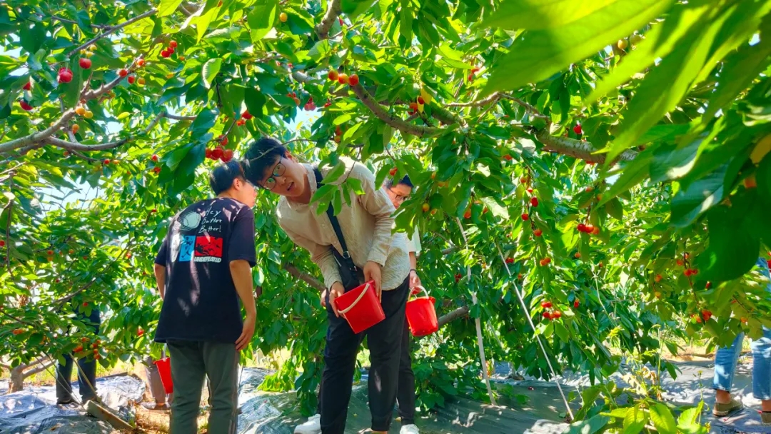 到达目的地后,大家分组行动,共同享受着樱桃采摘带来的乐趣,一时间,整个樱桃园内充满了欢声笑语。