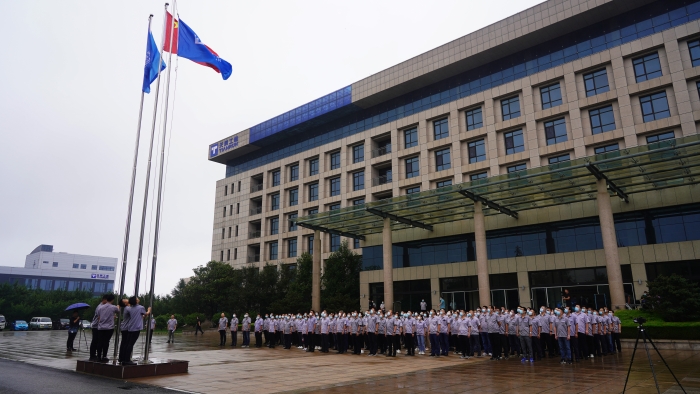 7月1日,为庆祝中国共产党成立101周年,天润工业党委组织全体中层以上干部、在职党员于办公楼前举行升旗仪式。