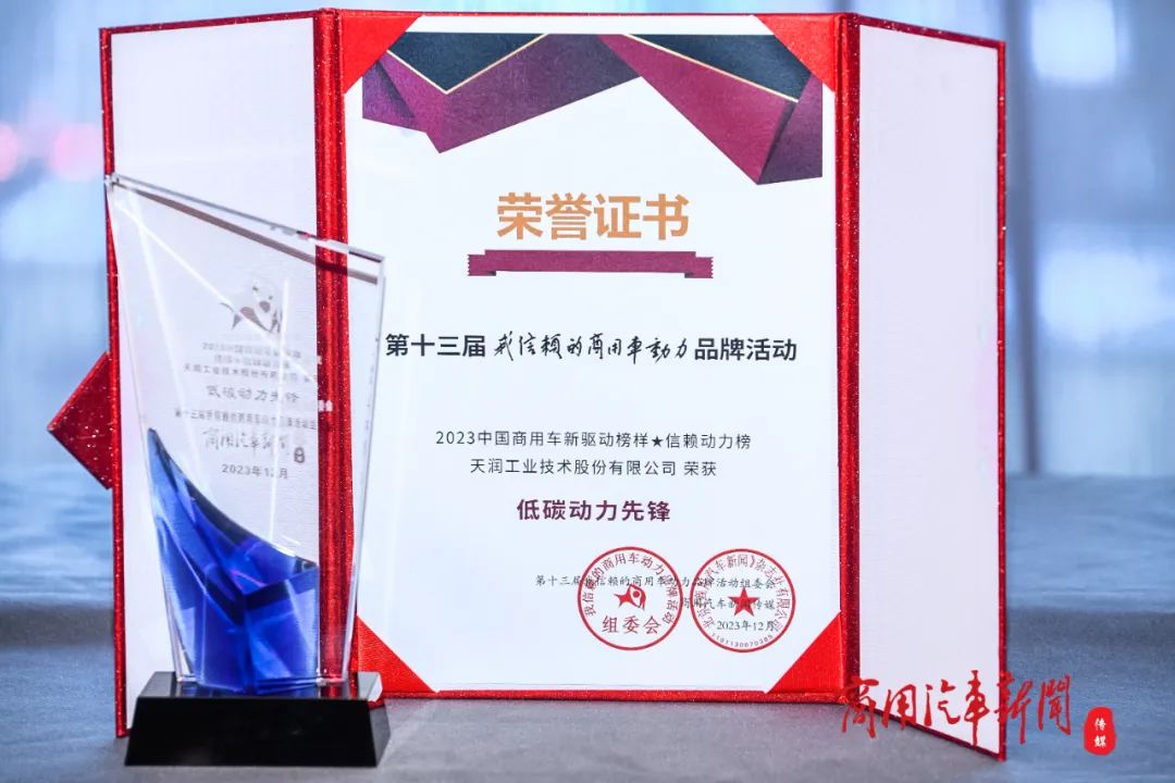 12月21日,2023中国商用车新驱动榜样活动在京举办,商用车行业年度总评榜同期揭晓。年度总评榜分为节能车型榜、城配车型榜、信赖动力榜、服务满意榜、高原巅峰榜、智能安全榜等六部分进行发布。天润工业通过持续深化产业变革,强化绿色生产、智能化生产,以企业转型升级助推企业高质量发展,成功荣获“低碳动力先锋”荣誉称号,公司党委副书记马明亮代表公司参加会议,并上台领奖。