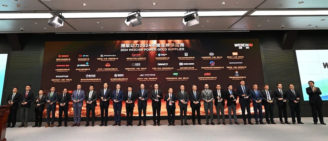 12月12日下午,以“永不懈怠、永立潮头、永争第一”为主题的潍柴2025年全球供应商大会举行,天润工业成功荣获潍柴动力2024年度金牌供应商”,邢运波董事长代表公司上台领奖,并作为金牌供应商代表作交流发言。