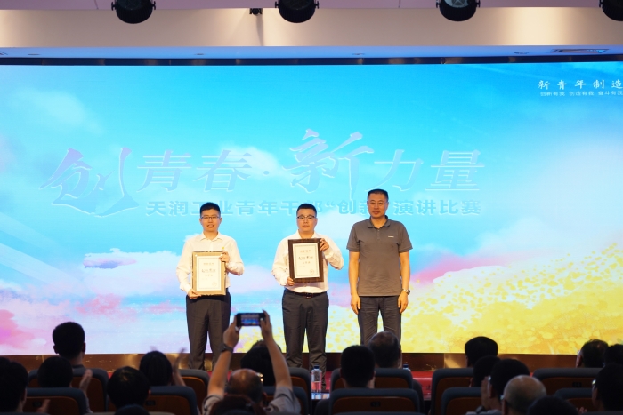 6月12日,“创青春·新力量”天润工业青年干部“创新”主题演讲比赛在公司七楼阶梯教室举行,来自公司多个部门的11名青年干部结合自身工作与年度“创新”工作主题,进行了一场精彩的主题演讲分享。常务副总经理夏丽君,总工程师孙军,副总经理王旭阳、王建科,总经理助理于建波、徐承旭,工会主席刘华参加活动,并担任比赛评委,全体中层干部及各部门代表200余人现场观赛。